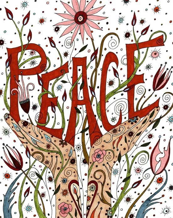 کبوتر معروف‌ترین نماد صلح است که از داستان کتاب مقدس در خصوص کشتی نوح اخذ شده است. کبوتر با شاخه‌‌ی زیتون زندگی جدیدی را نماد پردازی می‌کند که پس از ویرانی برقرار می‌شود. به همین ترتیب نیز رنگین‌کمان نماد آغازی تازه است. تصویر زمین و طبیعت نیز صلح را نمادپردازی می‌کنند. می‌دانیم طبیعت بیش از هر چیز با صلح همنشین است. در هنر بریتانیایی قرن نوزدهم، «صلح» چونان زنی به تصویر کشیده می‌شد که در فصل برداشت، میوه حمل می‌کند و این نماد رونقی است که مرهون صلح است (Glover: 2002).
